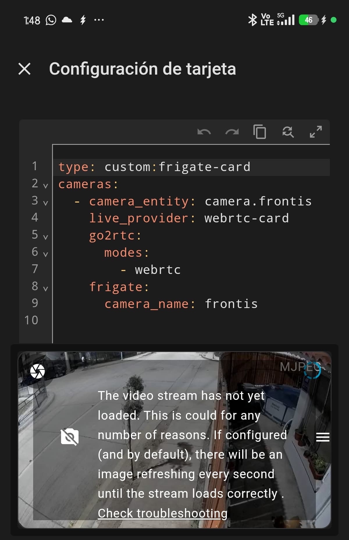 The problem is when I select the camera entity inside any card, it only plays a mjpeg stream, which it shows a “1 FPS” preview, I mean, only 1 snapshot of the camera per second and not the video itself: