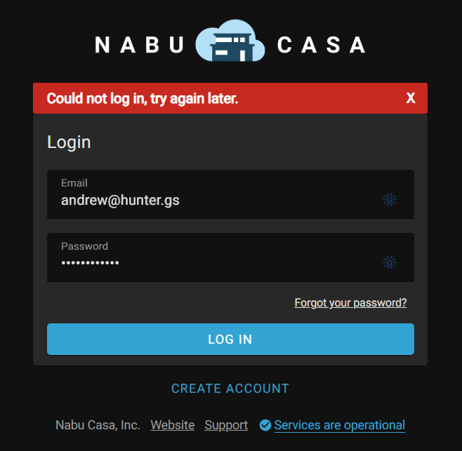 Can’t log into Nabu Casa Webpage or my Remote Instance.