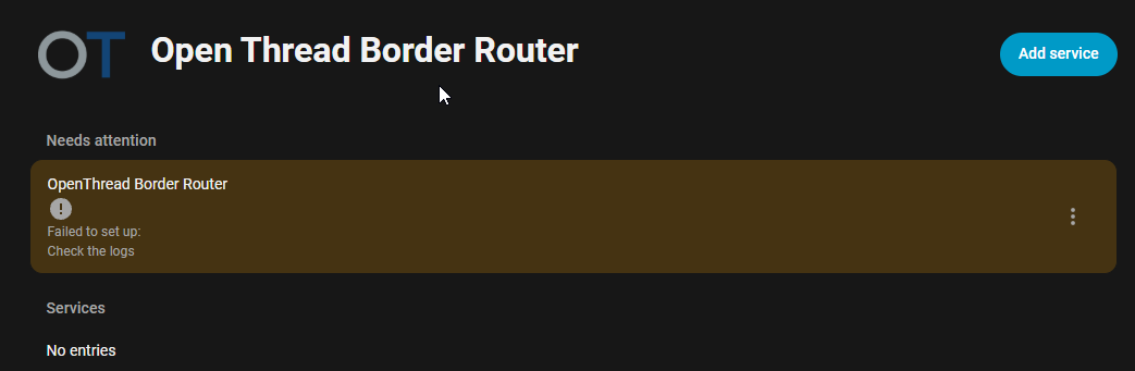 I then tried to re-add Thread integration (discovered automatically) and then manually added the OTBR integration once again. But I still get the same errors.