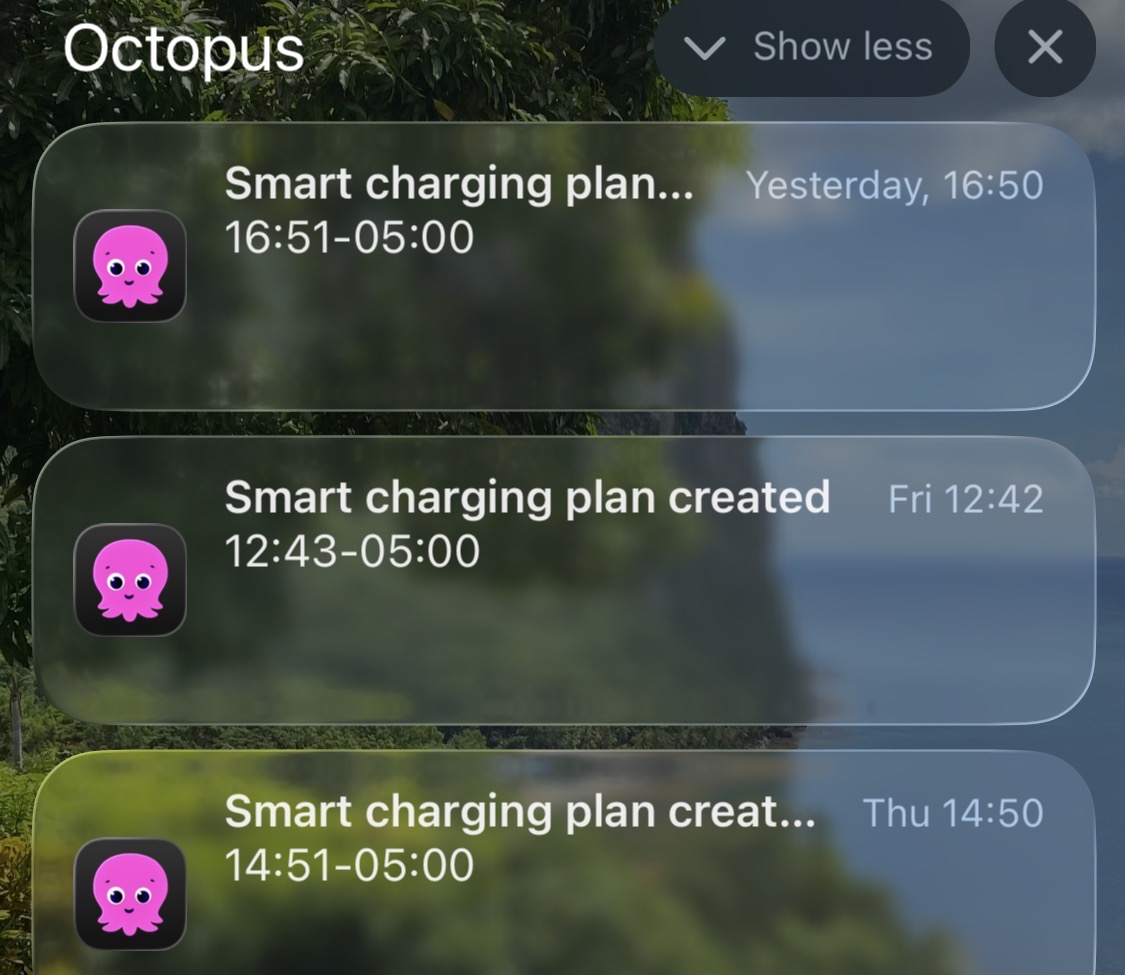 Octopus sends me a notification on iOS devices that it has created a smart charging plan with the times it has set.