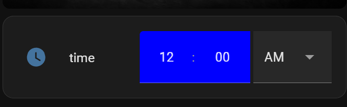 For example, simply adding background: blue !important; after align-items: center !important; gives you this for a time input entity,