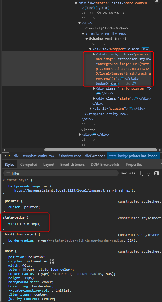 None of these state-badge changes is working any longer, so I assume the div#wrapper should be changed, but according to the DOM, I have no idea to what I shall change it.