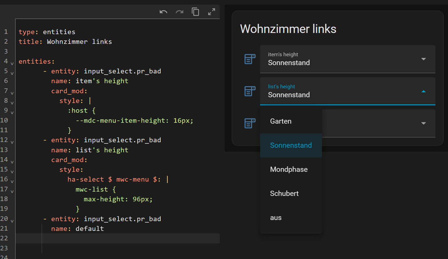 I would like to modify the items`height as shown in the cardmod thread. But the code ist not working for me. What is wrong?