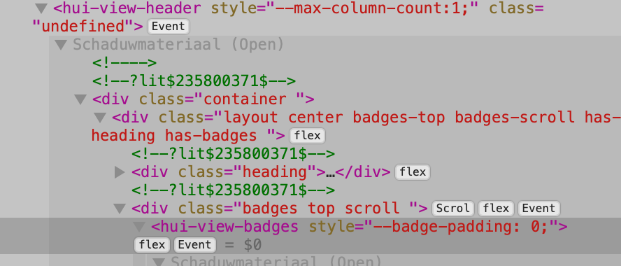I now want to also remove the badge-padding from the hui-view-header (I just dont like all of that padding in the modern HA frontend), which I can do in Inspector: