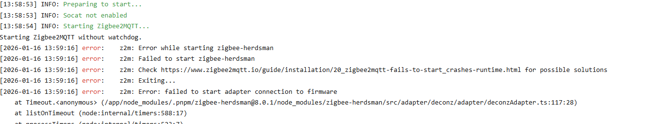 But Z2M refuses to start. This is the log entry