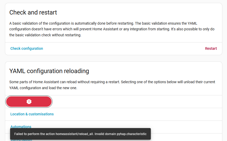 I hope anyone can help me as I’m struggling to find a solution, and I’m affraid sooner or later it will cause more issues… I noticed the “Check configuration” and “Restart” just not working, I don’t know when the issue started ![]()