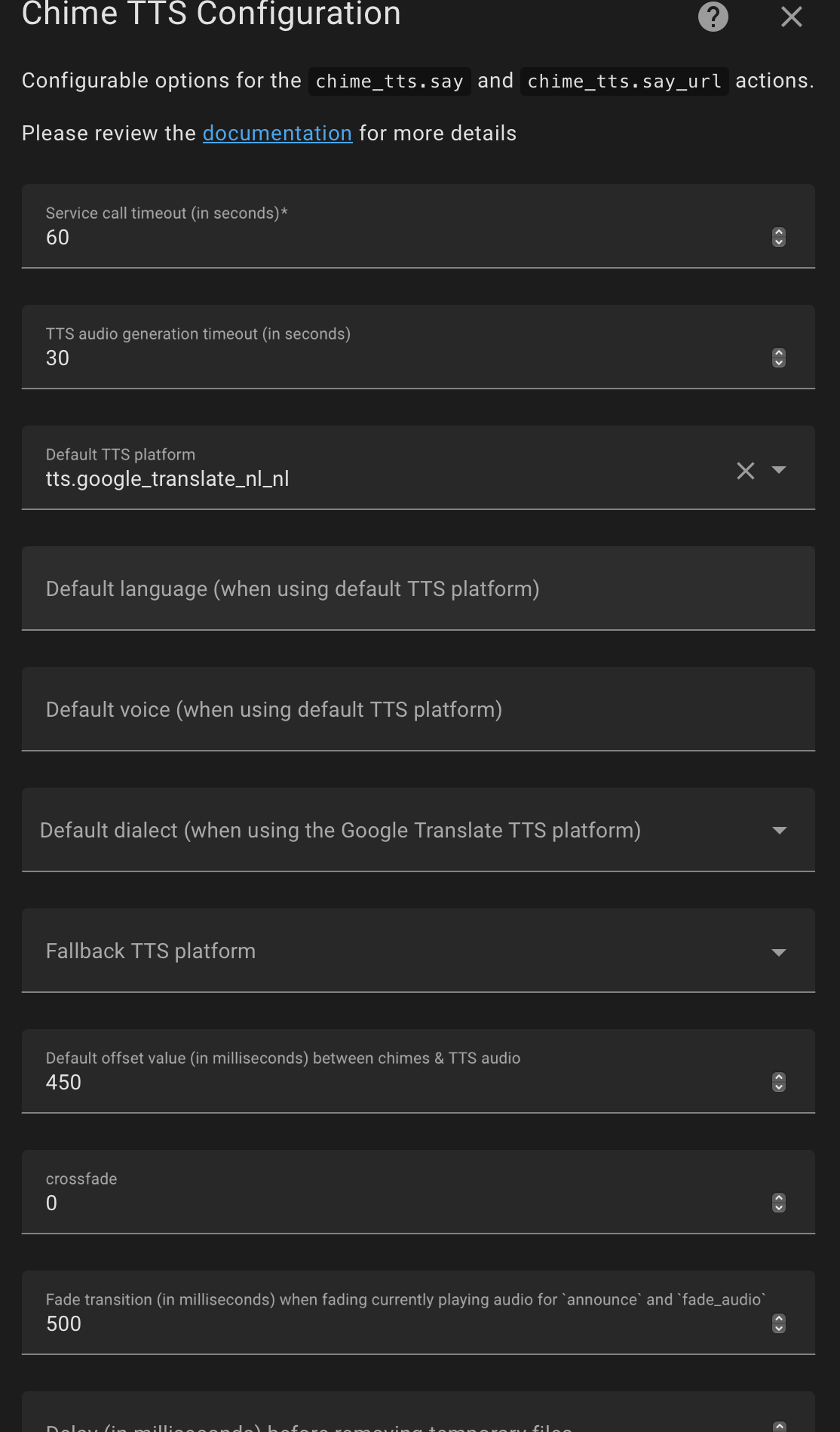 Now I am wrecking my head over how to get the chime_tts.say function to start working again on my airplay 2 devices. I can get a direct google translate TTS and also a chime_tts.say_url function to work. But if I want to call chime_tts.say then the below connection lost error logs appear and the sound does not play, were it did play perfectly before. Below is the script that I use, it works now on the Sonos players but not on the airport express airplay2 devices: