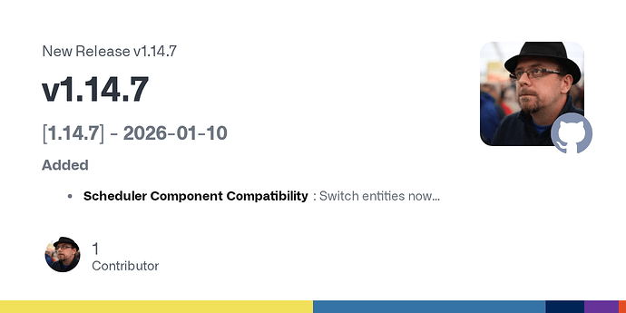 I’m starting to think I need to rewrite this whole thing to be a new front end for Scheduler Component to be honest, it has a foothold in the community and everyone has used it as the basis for other cool components and automations and would basically fix loads of problems others are asking about. I need to have a proper think about that.