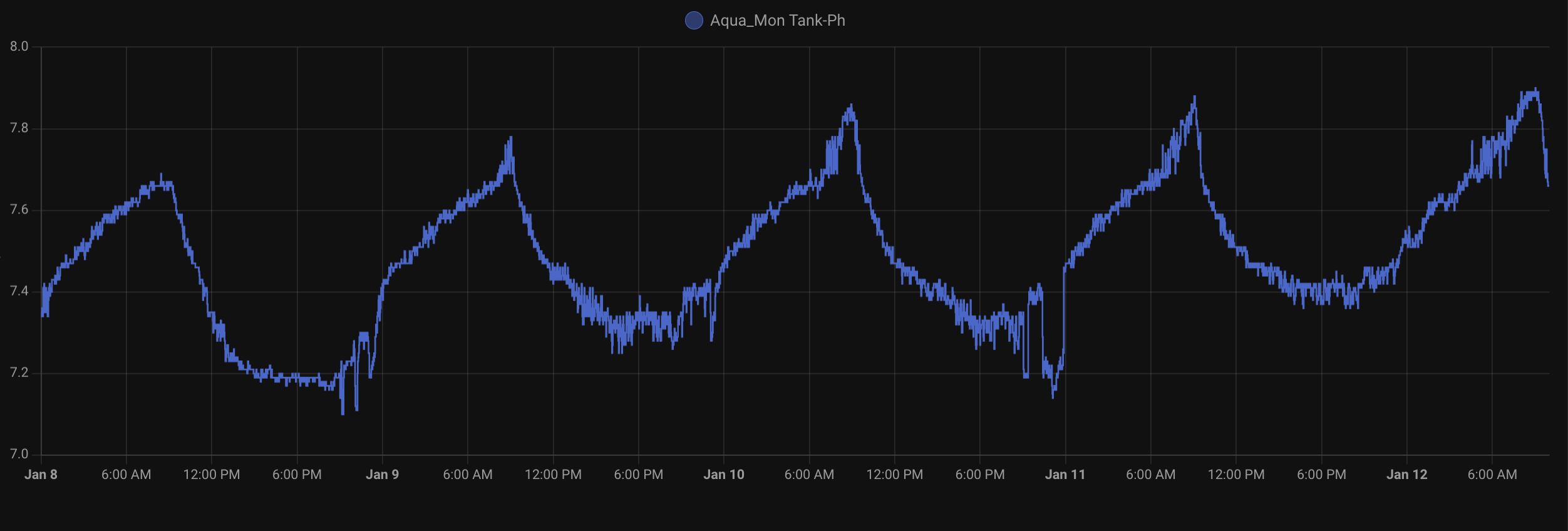 This is not a lab-standard sensor for sure. But fairly reliable. I am injecting CO2 into the tank and constantly measuring the PH is a very good way to see how the injection works. When you inject CO2 you’d expect the PH to drop. I am happy with the way that the sensor reports the PH level. Look at the result below