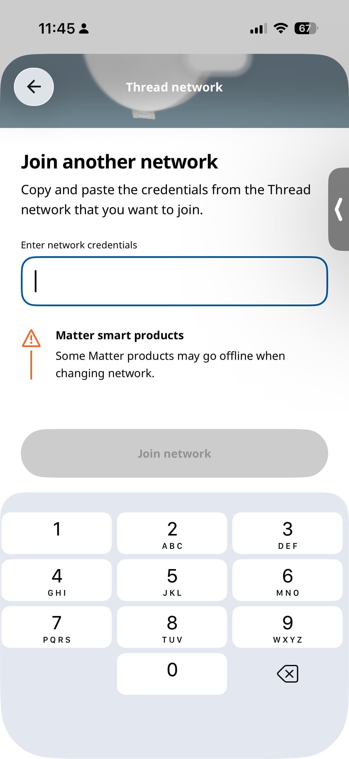 in the ikea app it seems to want a 9-digit code as network credentials but i cant find anything that looks like that in home assistant. i cant seem to move it in HA under the thread integration.