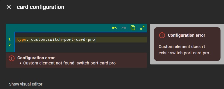Then created the dir ../www/community/switch_port_card_pro_card and downloaded switch-port-card_pro.js to it. Then added the resource /www/community/switch_port_card_pro_card/switch-port-card-pro.js and restarted HA.