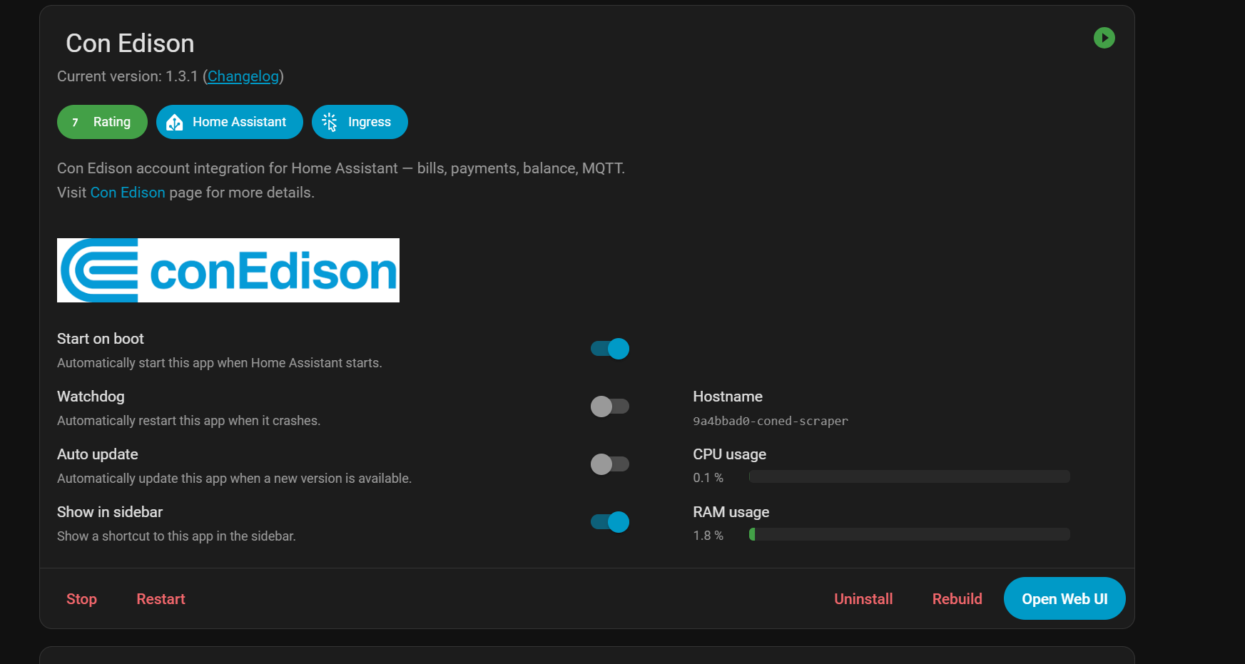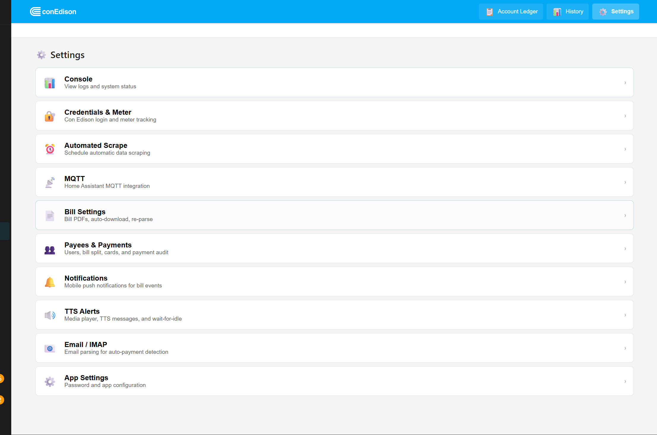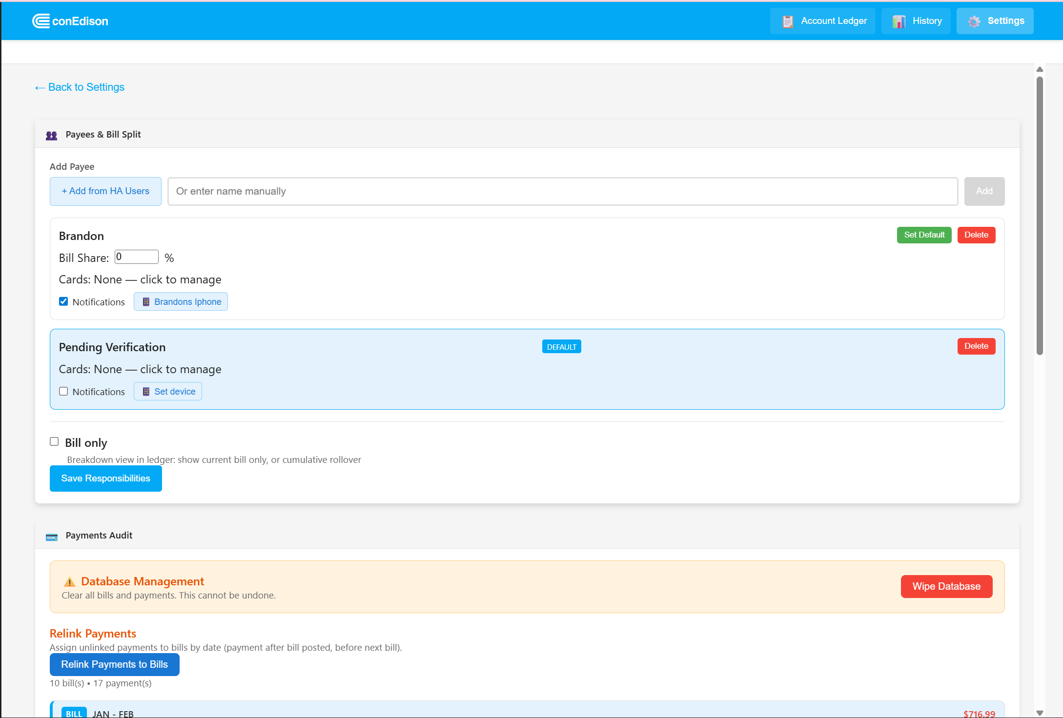 Inspiration was to get away from opower integration ended up simply using same api they use (for now) but added another layer of scraping via con ed website which pulls payment history ect, made for those who share utility with a roomate with payees and splits ect and can assigbed scraped payments to payees via imap (W.I.P) essentially i originally had this working with sqlite3 database but switched to postgres with prisma studio (accessible in ha lol) for dev purposes. so allot of things have to be rebuilt but this is super dope