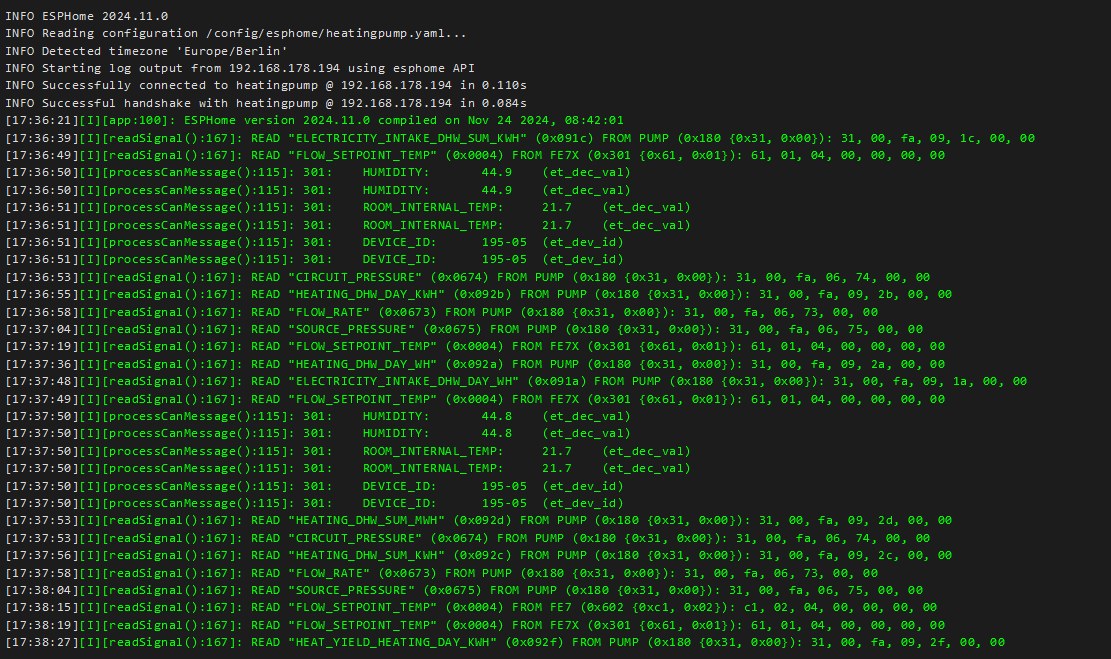 So i also started adding an esp to my heating pump. I have an Tecalor 5.5 eco, added cabling and getting messages from my heating pump. But only for FLOW_SET_POINT and OUTSIDE_TEMP. Does that mean I did something wrong? Do I need to change something? Not sure about my can_id for Manager, KESSEL and other. Where can I find them or does someone has the same device and got it working?