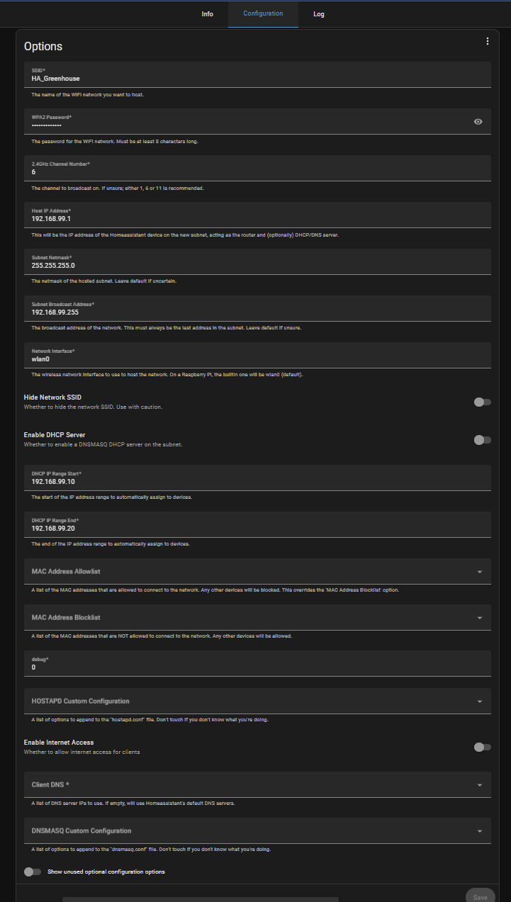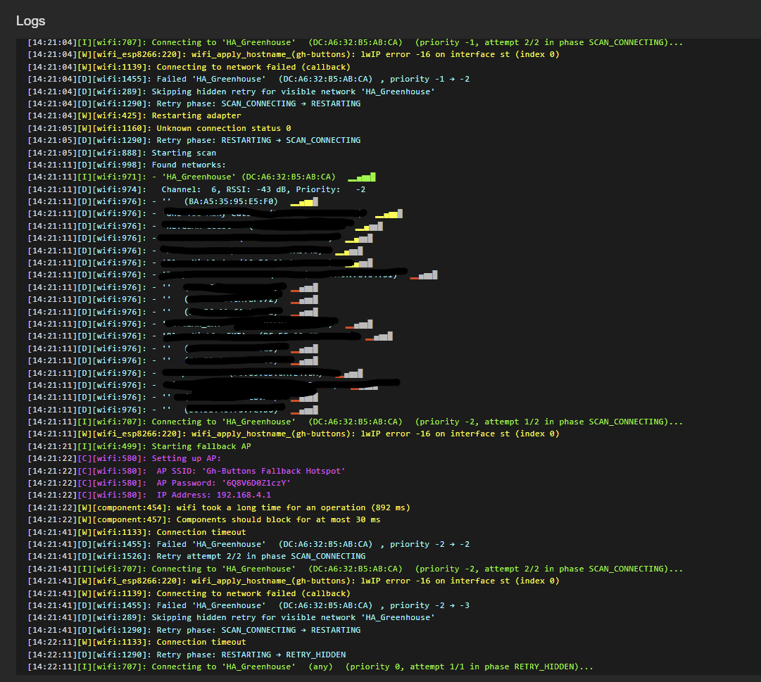 Hi, I have HA Running on a RPi 4. This is for a greenhouse out in the yard, so I am using Hass.io Access point to connect to a D1 mini. The d1 mini will run some buttons so I essentially have a light switch through the HA pi to a Zigbee outlet. I followed a guide to set up the D1 in ESP home and flashed the chip. It is showing as offline. Hass.io Access Point is running.