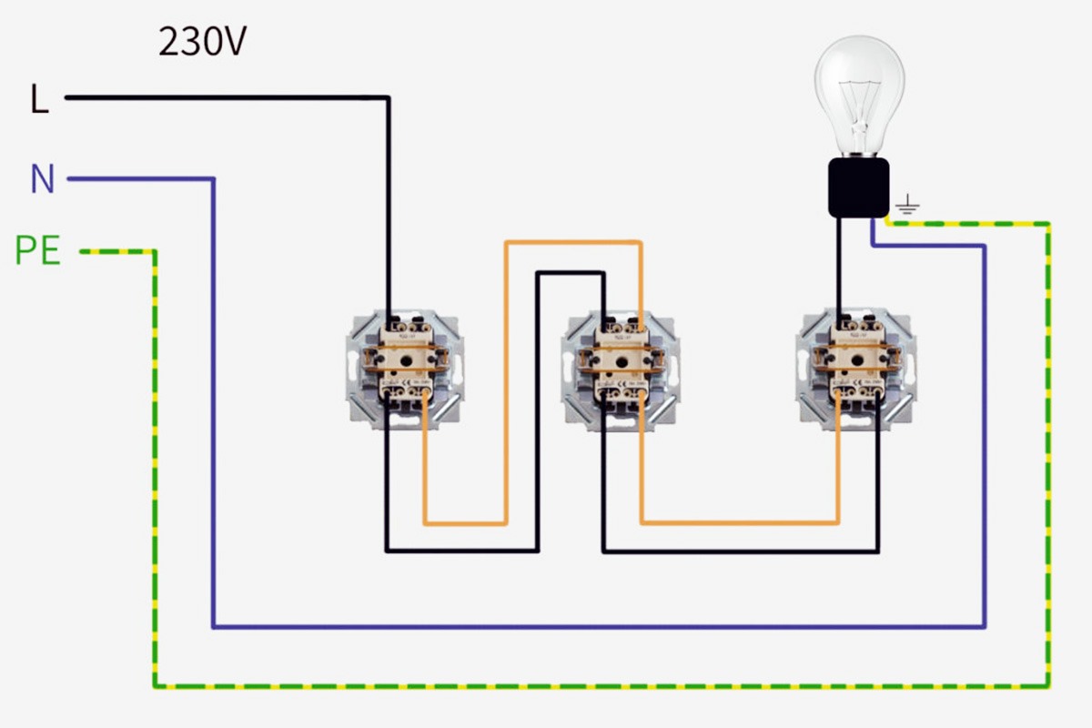 I’ve got a dumb light in the hallway that is currently controlled by three dumb switches. I checked the switches and they are currently wired in a configuration like this (two normal switches, one cross switch):
