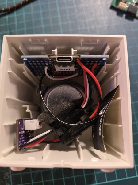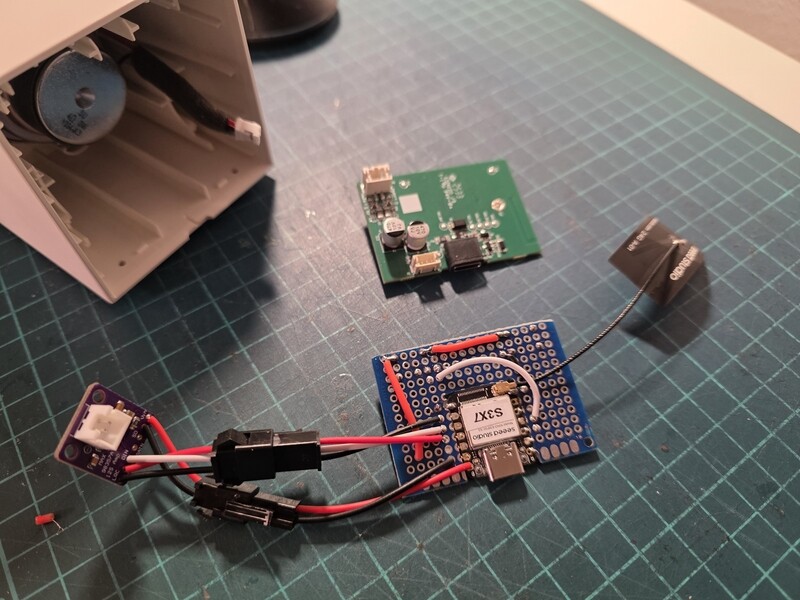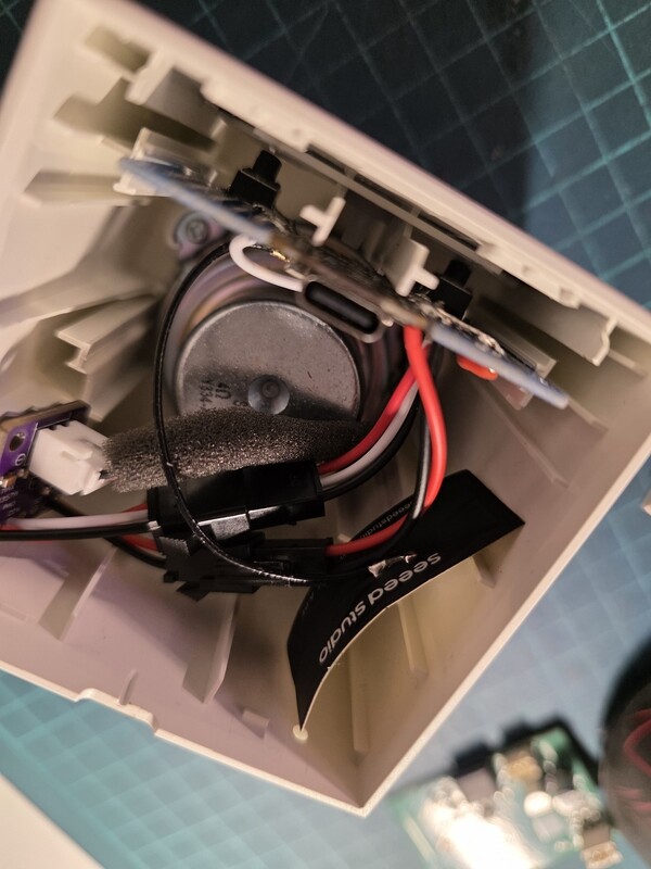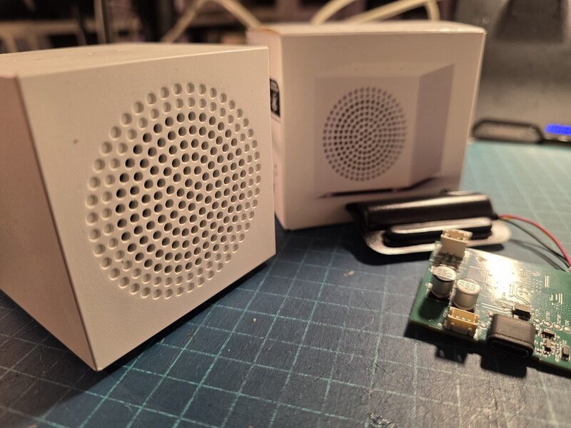 Replacement board, consisting of a XIAO ESP32-S3 and a MAX98357A DAC.