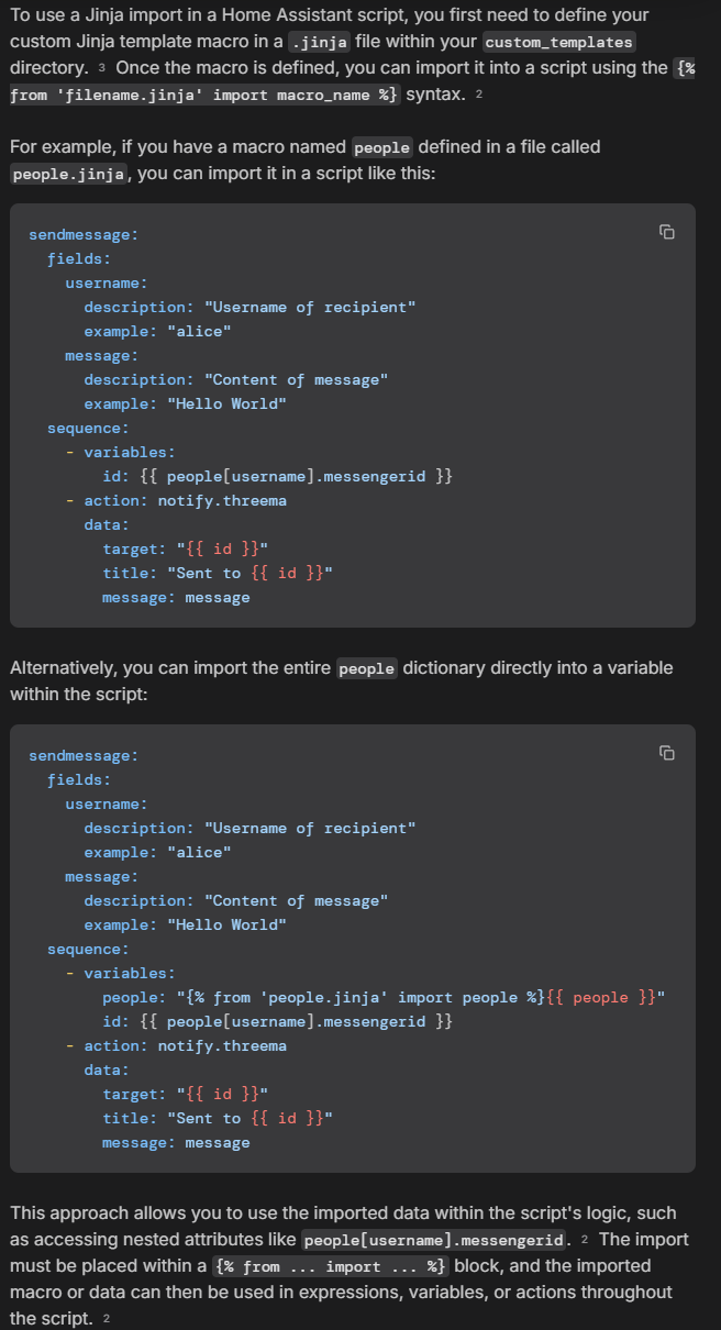 This does not work as I can not figure out where to put {% from … import %}. I tried a bunch of places, but either the line is ignored or invalid. Looking at the templating documentation did not resolve this for me.