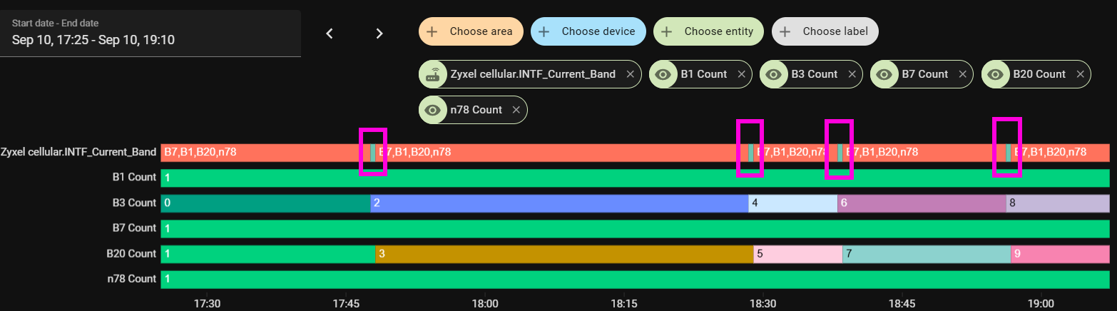 a way to count how many times the different strings related to cell bands appears over time, I tought to build an automation that every time the state changes it increment a counter (one per band) but I cannot figure how to do it since the string returned from the sensor in different every time and not all the cells are present. (es. the next value/state could be âB3, B1, n78â)