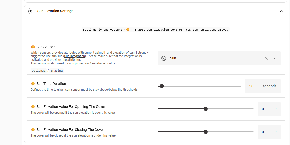 My question: How can I configure the shutters so that they don’t close as early as the sun event? According to The Sun, sunset is already shortly after 4 p.m., which would currently be too early. But setting an early down time to a later one doesn’t seem to work.