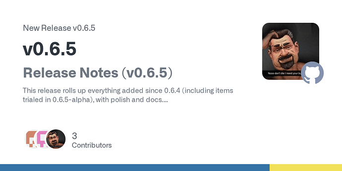 v0.6.5 is out, rolling up everything since 0.6.4 (including the 0.6.5-alpha changes) with polish and docs.
