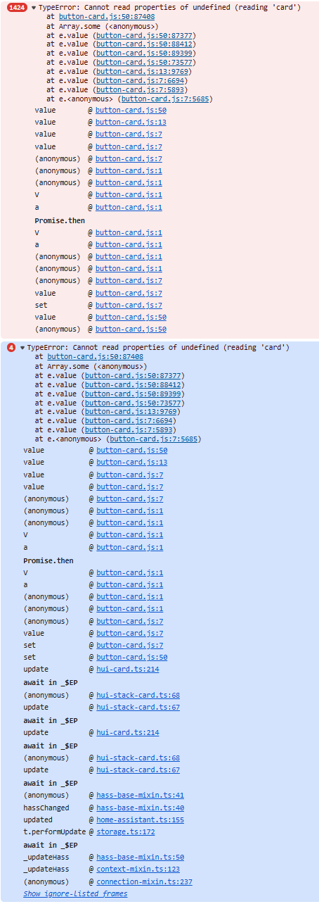 How do I begin troubleshooting console errors relating to custom:button-card?