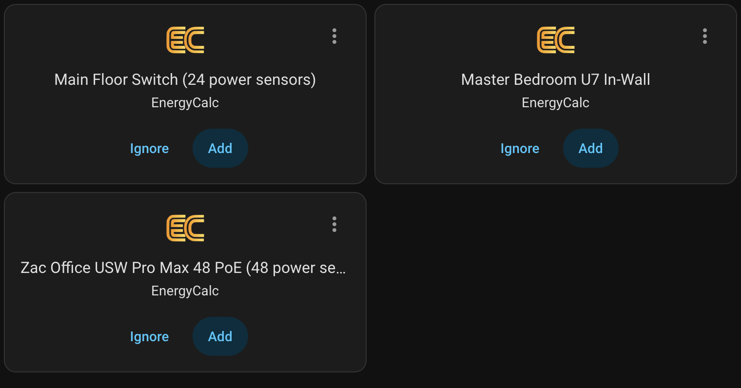 In any case, the difference is mainly that EnergyCalc does discovery for these situations specifically, and does so in batches (at device level). I have roughly 200 PoE ports (5 or 6 network switches) and 100 power monitored outlets (a few PDUs and some other random items) that needed this functionality, so it’s easier for me to click “Add” 9 or 10 times. It also discovers sensors you may have forgotten about or not realize they are power-only (I accidentally found a few this way). It only does one thing, but hopefully does it well.