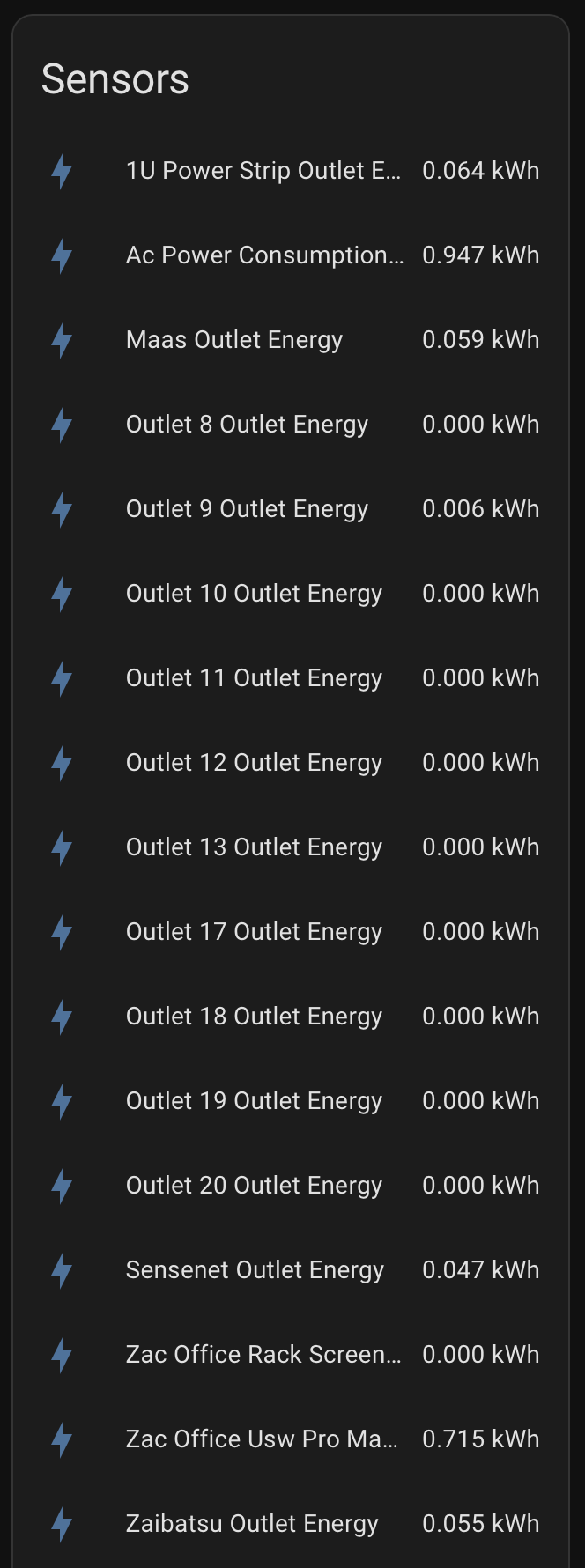 I built it because I have a couple of Unifi PDU Pros and they report on power for each outlet, but have no energy sensors. The usual way to address this is by making a template sensor using the Riemann sum component. Unfortunately, that one doesn’t assign unique IDs or make the sensor part of the device page in the UI. I wanted to assign these sensors to specific rooms, so I made this overkill component to create them for me.