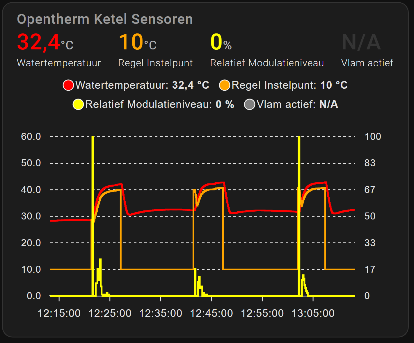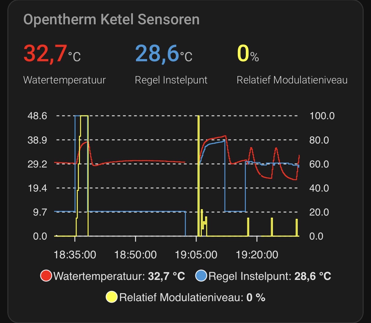 The Setpoint is now around 30 degr. But within a few seconds at 15%, the water temp shoots over the setpoint to around 40 degr, after which the boiler reduces power to 0%