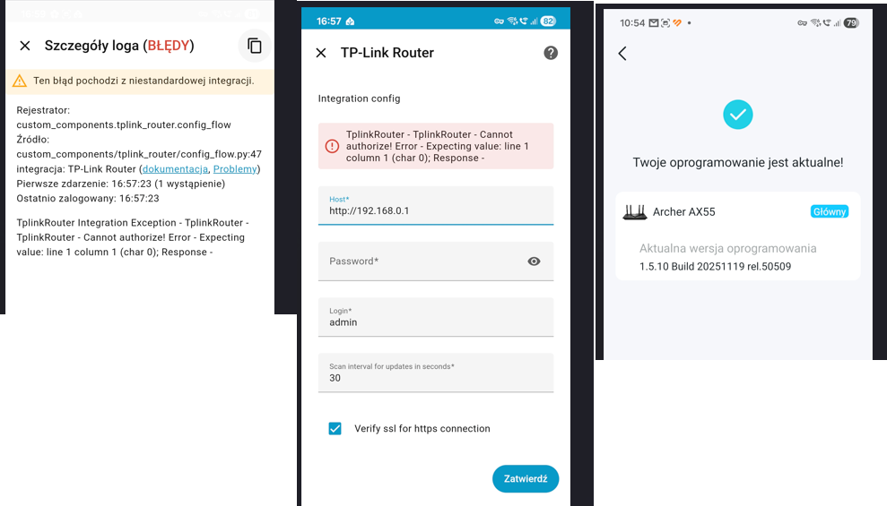 I have a TP-Link Archer AX55 router and I can’t connect to your integration. I get this error.