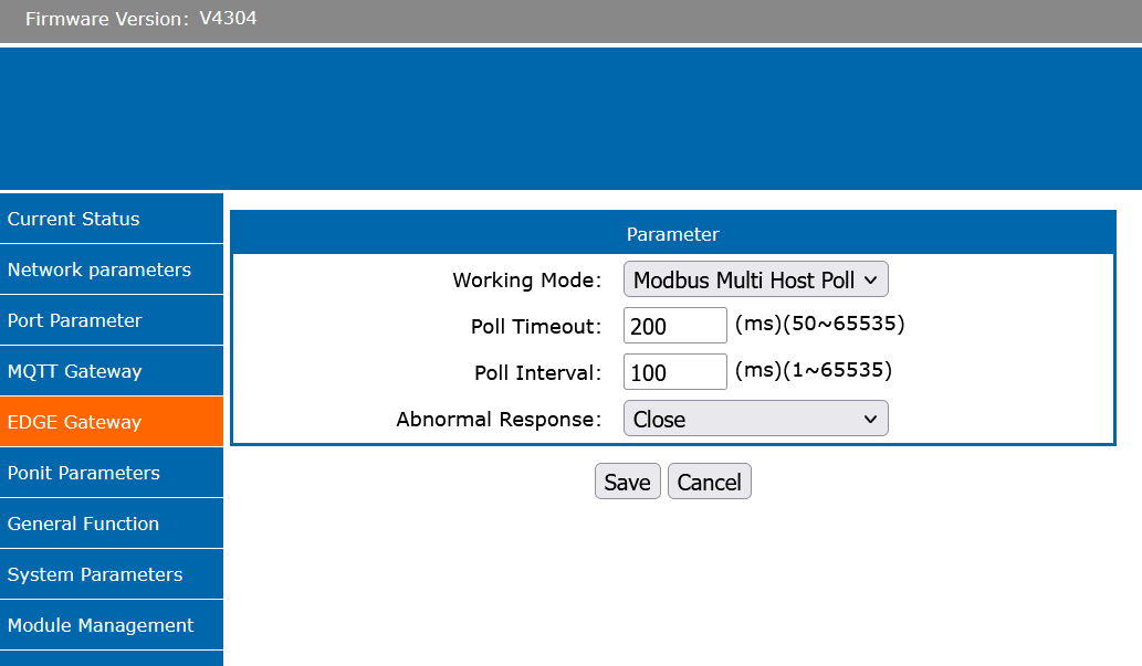 - EDGE Gateway: Working Mode: Modbus Multi Host Poll