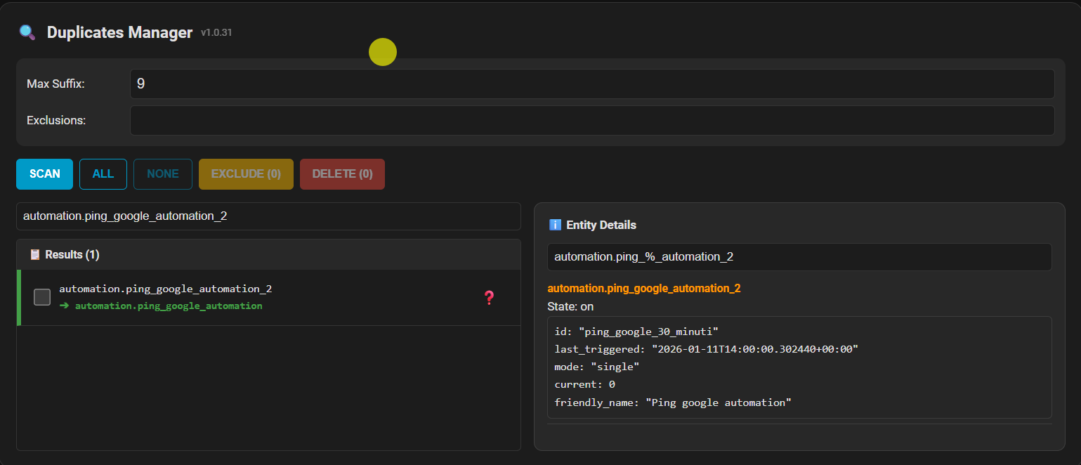 I’ve created a custom integration called Entity Duplicates Manager to help you identify, manage, and clean up these pesky duplicates directly from your dashboard.