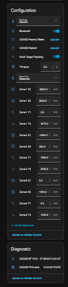 Look at what I have when I plug the ld2450 on a esp32. I would prefer the Bluetooth way but some of those option I use. Also with the app I can define zone easy and use them in home assistant. With Zone I can track where a target is and do things accordingly like turn on light.