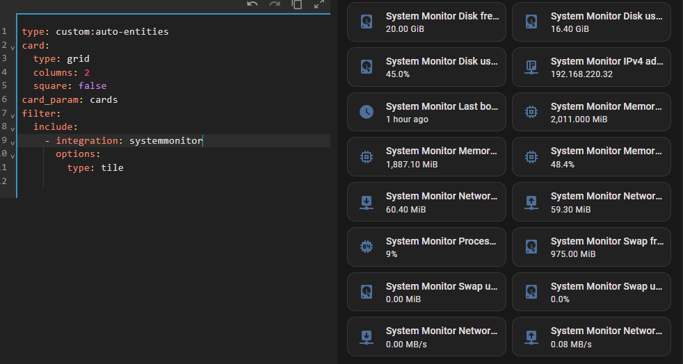 For example I have the Broadlink integration, with 9 double sockets in the house. Is there a shortcut for adding them all to a panel on the Dashboard? Each socket it an entity, so it’s basically 18 entities to add. ![]()