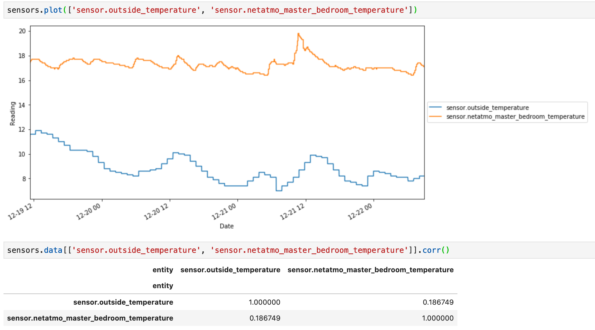So I did a quick check to see how well my house insulation is doing this winter and the data-detective made it easy to verify that my bedroom and outdoor temperatures are not correlated, indicating that my homes insulation works well