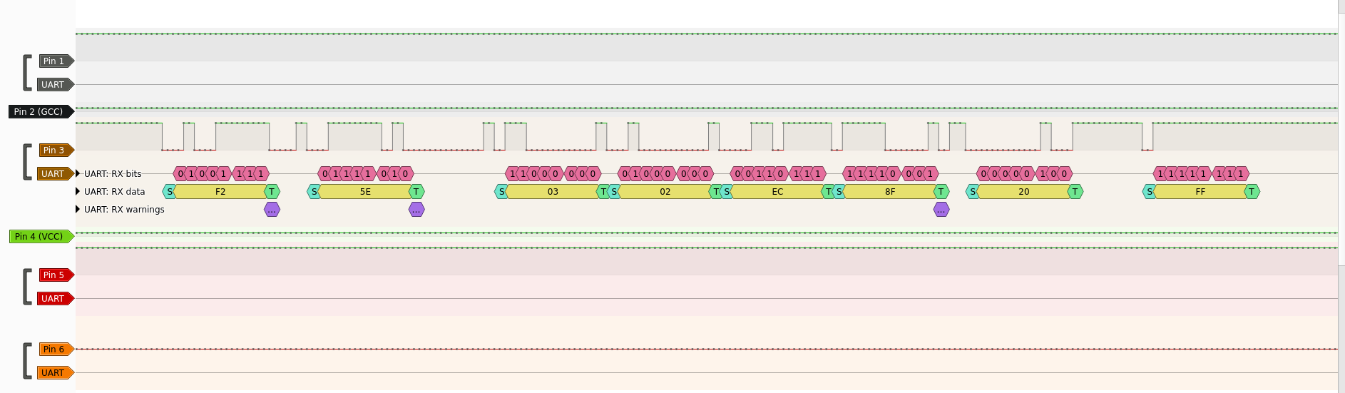 Does that look correct? I’m having some doubts about the 8N1 part (looks like the desk sends no stop bits at all), but I think that’s what the UART in esphome uses with my configuration?