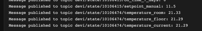 I have reloaded the thermostats into MQTT, however the temperature displayed in MQTT is the floor temperature and not the air. However, in the Devismart MQTT add-on it is visible that the temperature is being loaded, but I do not see it in MQTT.