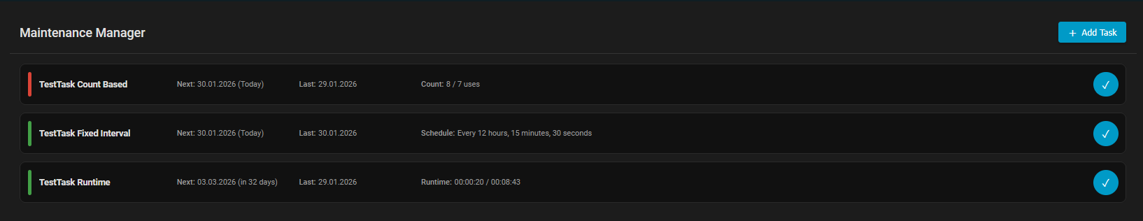 maintenance_name- Human-readable task namemaintenance_unit- Custom units for count-based tasksmaintenance_interval- Formatted schedule display