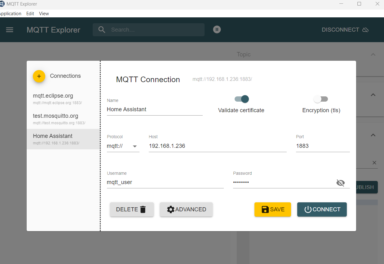 I forgot I also have MQTT Explorer installed on my Windows machine (HA is running on an NUC). Here is a screenshot of its settings and even with the IP address as indicated, the rtl devices do not update. Maybe that is another clue.