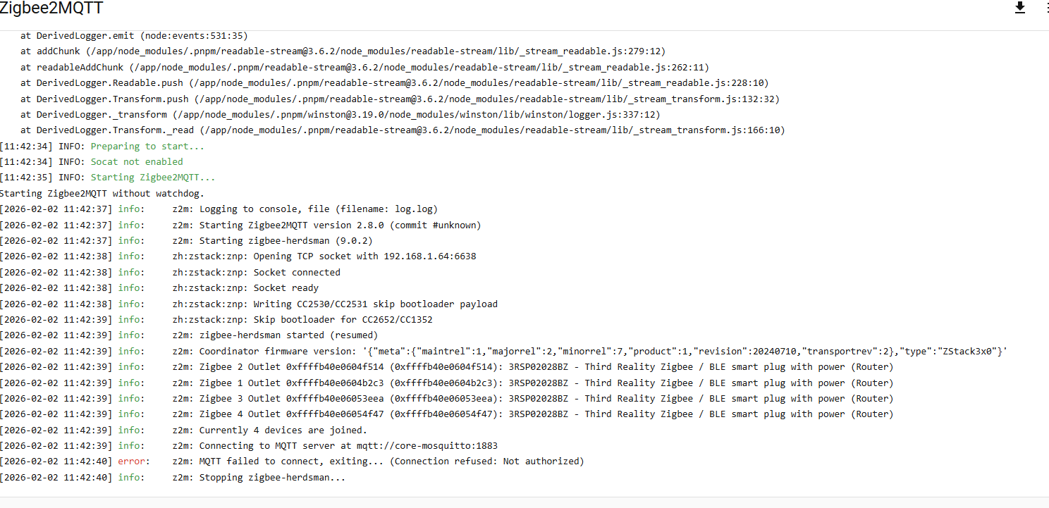 [2026-02-02 08:53:12] info: z2m: zigbee-herdsman started (resumed)