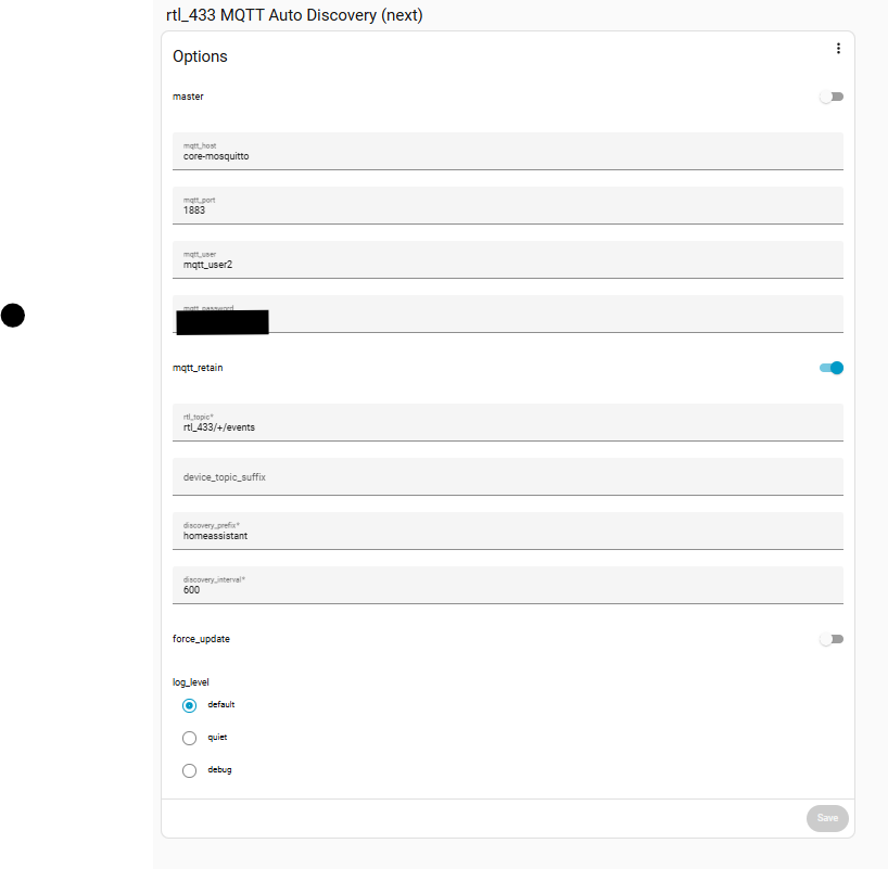 Save and restart the rtl_433 MQTT Auto Discovery (next) add-on.