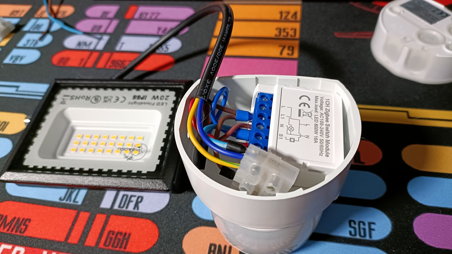 I spotted a couple of Zigbee floodlights, but they were kinda pricey, especially in comparison to the thousands of very cheap security light options out there. So I opted for modifying “dumb” security lights to make them a bit smarter, which cost less than 10 quid, all in.