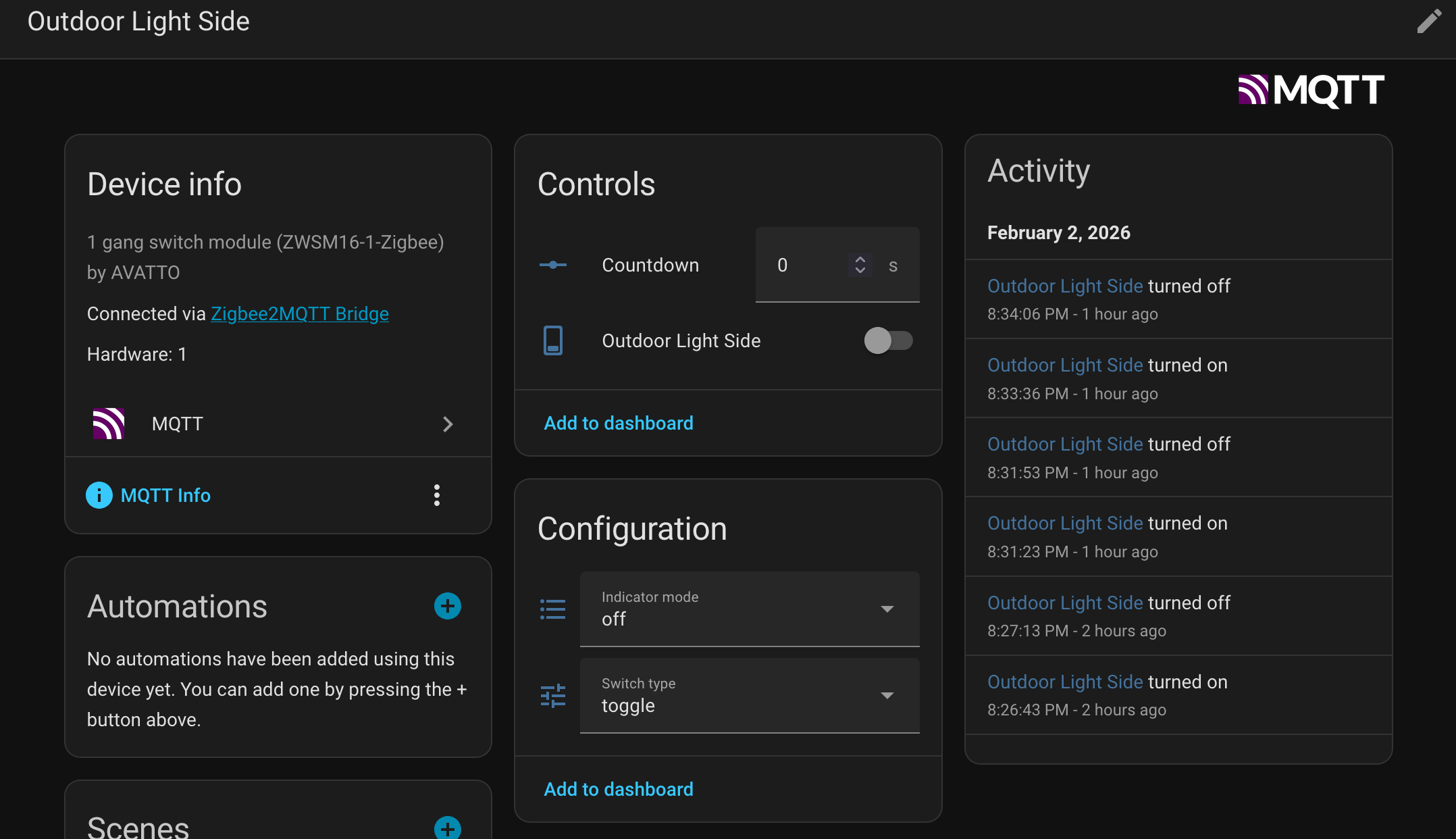 It also has the advantage of giving you a sensor in Home Assistant whenever the PIR detects motion (the relay status switches on and off with the PIR). So you can trigger automations from motion detection, too, should you want to.