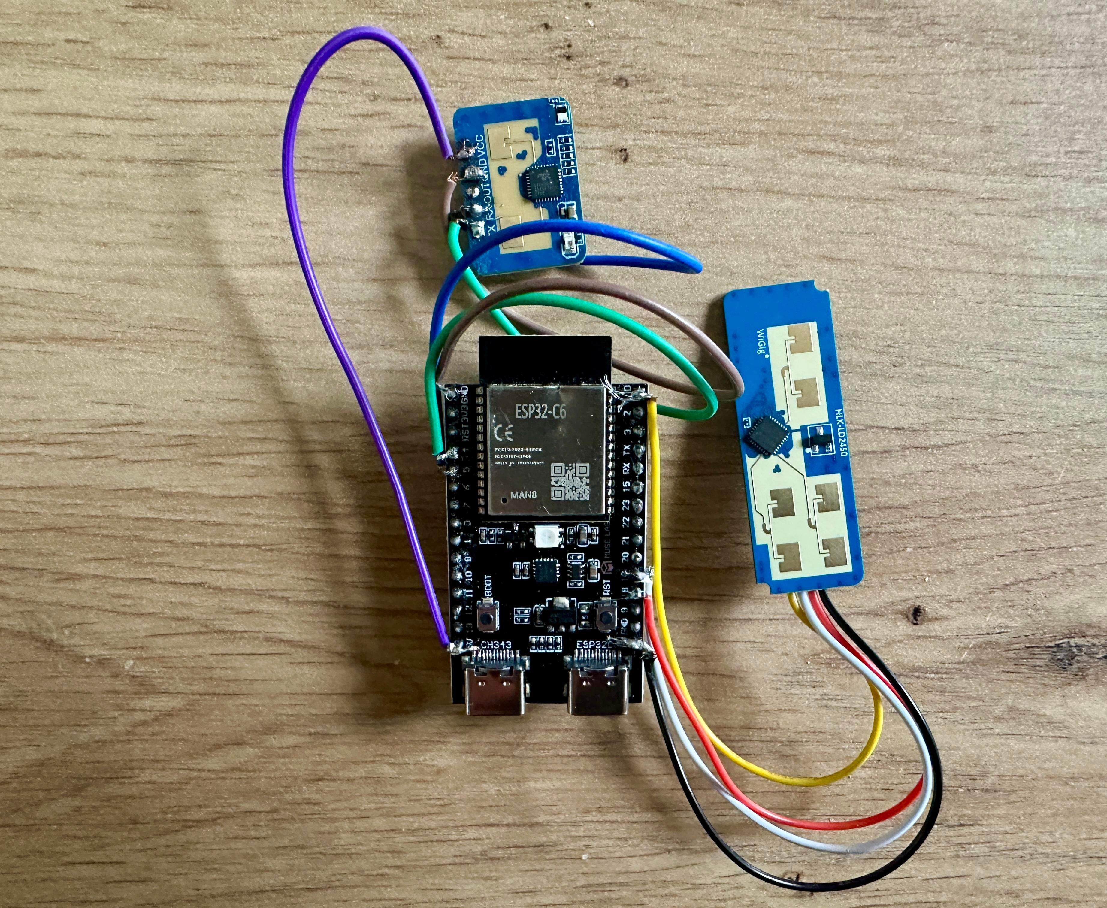 - Dual sensor cross-validation: the LD2450 validates LD2410 detections, which eliminates the false positives I was getting from sensor interference