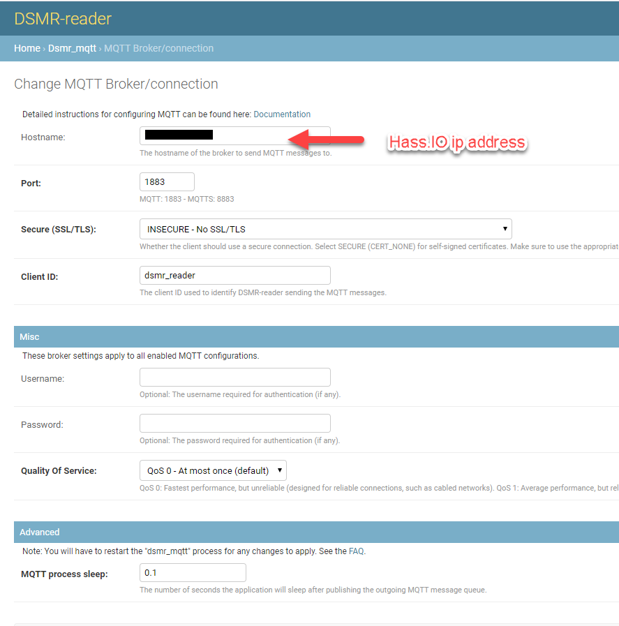 It seems it does not work when using the MQTT of HA itselves with the DSMR Reader installed next to it. I installed an MQTT broker on my desktop, and within seconds it’s sending telegrams to it. Works like a charm. I will try install MQTT broker in Docker on my Brix computer next to HA in Docker. Hope that works, otherwise i’ll install MQTT Broker on my Raspberry Pi and let HA read that device.