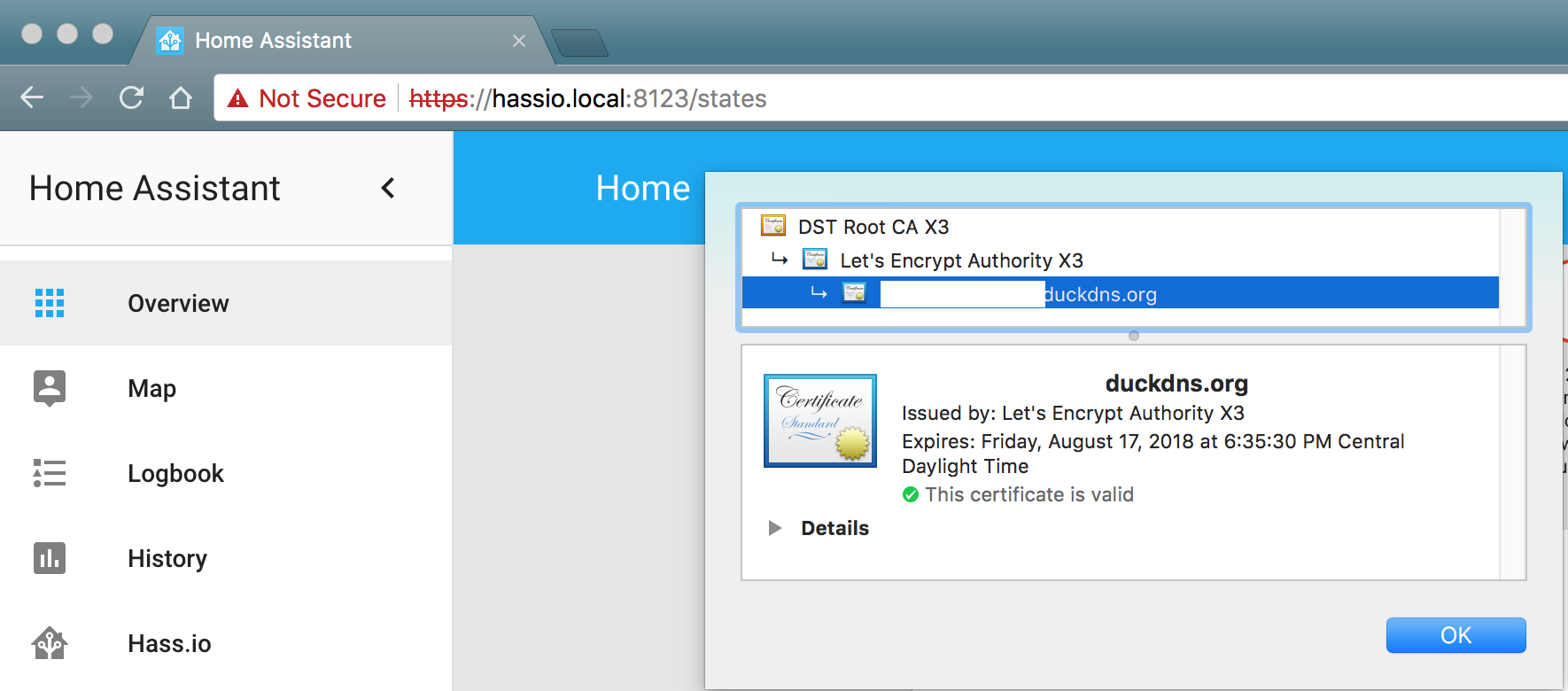 I’ve been trying for many hours to setup DuckDNS on my RPi3 running Hass.io and have not been successful in doing so. Here is my current state: