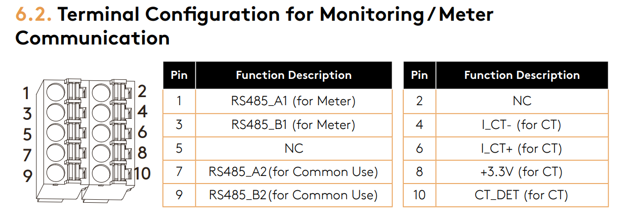 When your following those instructions you will find your RS485 connector is different, you don’t need to buy anything here, your inverter has the connector, but it’s this - use pins 7 & 9