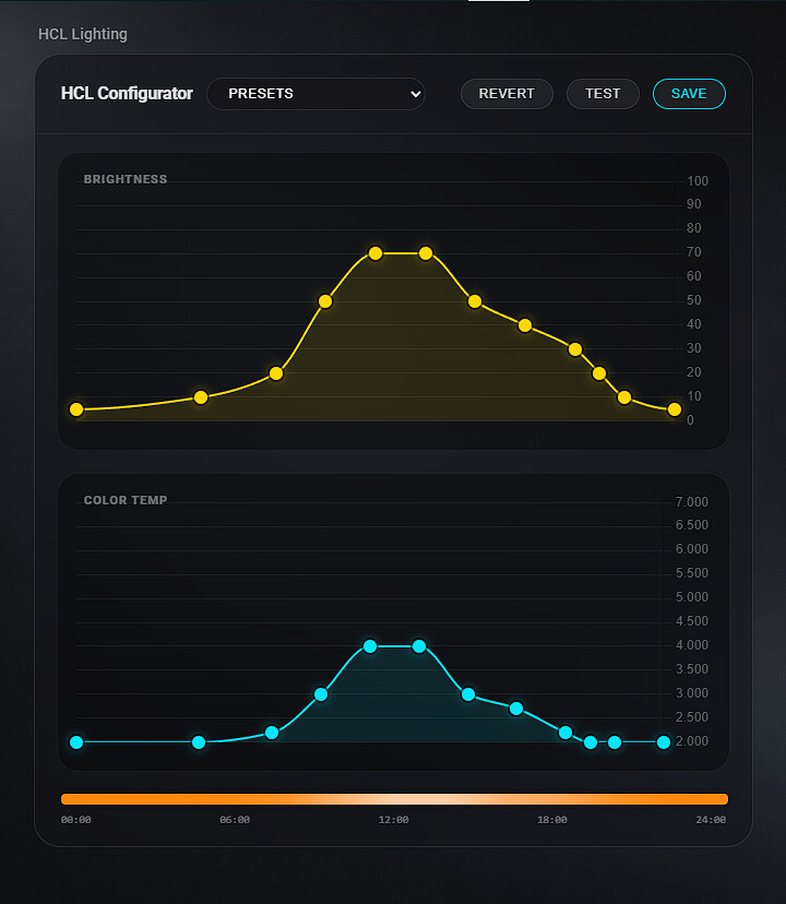 One challenge with Circadian/HCL lighting is that it’s often hard to visualize exactly how the light will behave throughout the day just by looking at configuration numbers. You often have to wait a whole day to see if the transitions feel right.