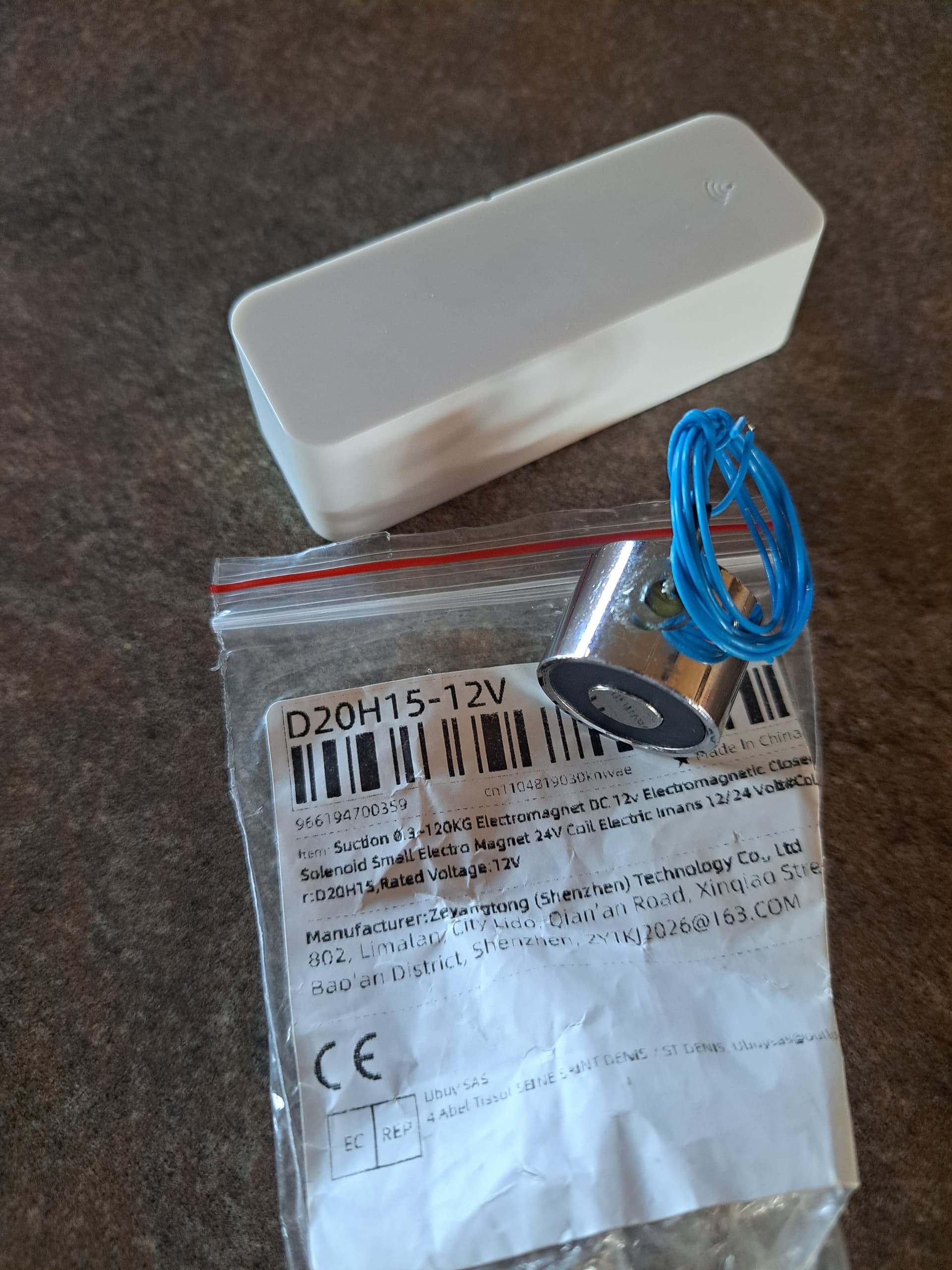 I’m using a cheap generic Tuya zigbee door sensor (no need to use the included magnet). Just couple that door sensor with a micro electromagnet. The electromagnet is hot-glued to the door sensor and then wired in parallel to the door solenoid using the screw terminals. Current draw on the electro-magnet is about 300ma, so very low.