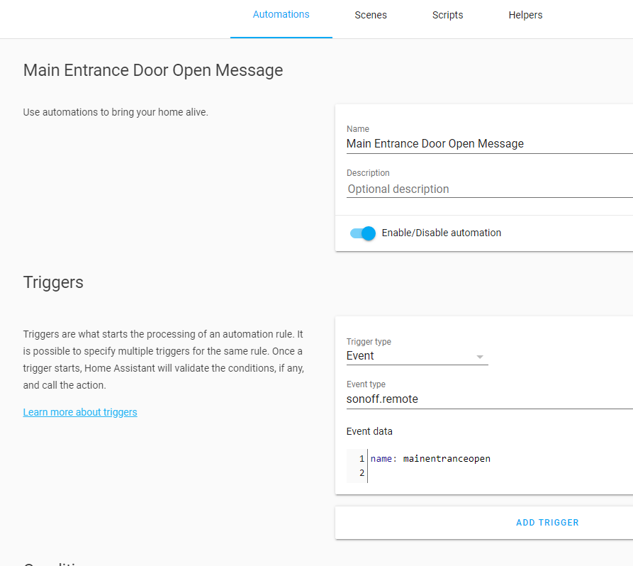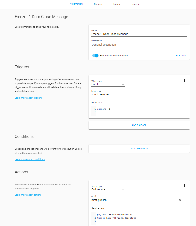 Be careful not to make any mistakes in the topic and payload values as they will have to be exactly the same as the ones you typed down in your configuration.yaml file, when you created your binary sensor.