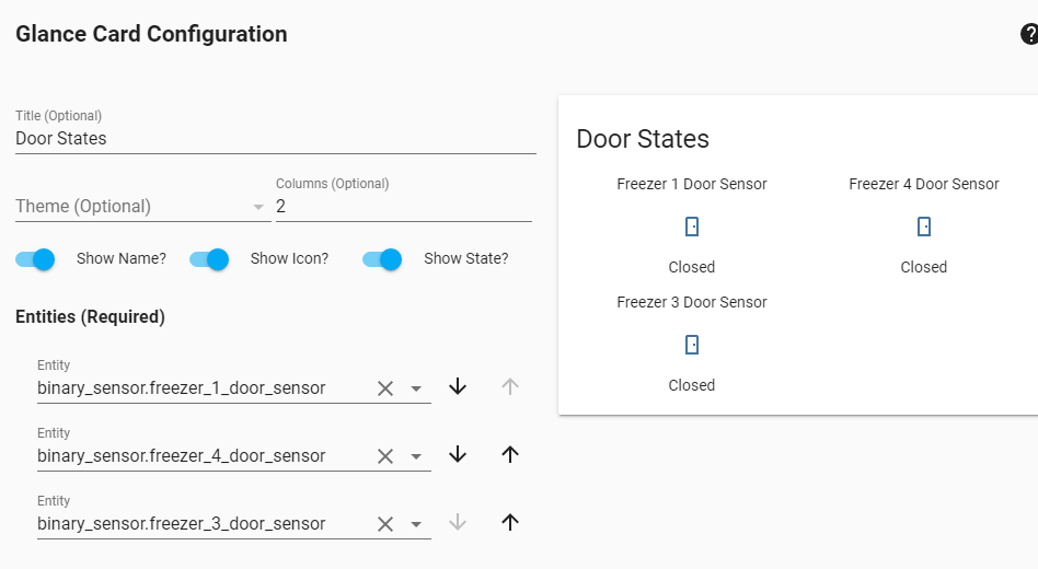 You will see your enitites(the ones you created in your configuration.yaml file listed with their respective names.